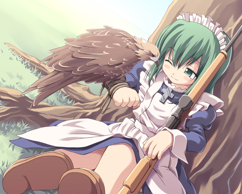 05.01.14 GEISYA様よりいただいた寒中お見舞いです! 年初め鷹匠メイドたん(ライフル装備)。相変わらずの美麗イラストに萌えです。 やはり一年、メイドさんに始まりメイドさんに終わるのが、メイドさんスキーとして 至上ではないかと…!さーいえっさーなのです。 酉年ですが、普通にニワトリとメイドさんではなく、木陰で休む鷹匠さんなので、 メイドさんワールドが更に広がって、それはもう…!ありがとうございましたっ。